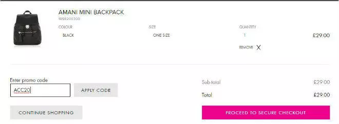 - Click 'My Bag' in the top corner to checkout, your discounts will appear and to use a promo code, simply enter yours in the space provided