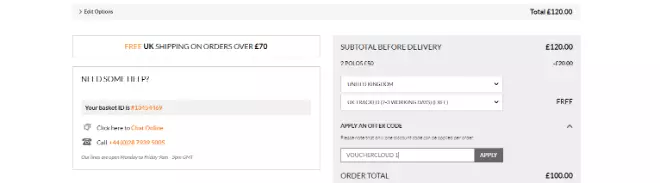 - When finished, click the basket icon at the top-right corner and scroll down to fill in your voucher code